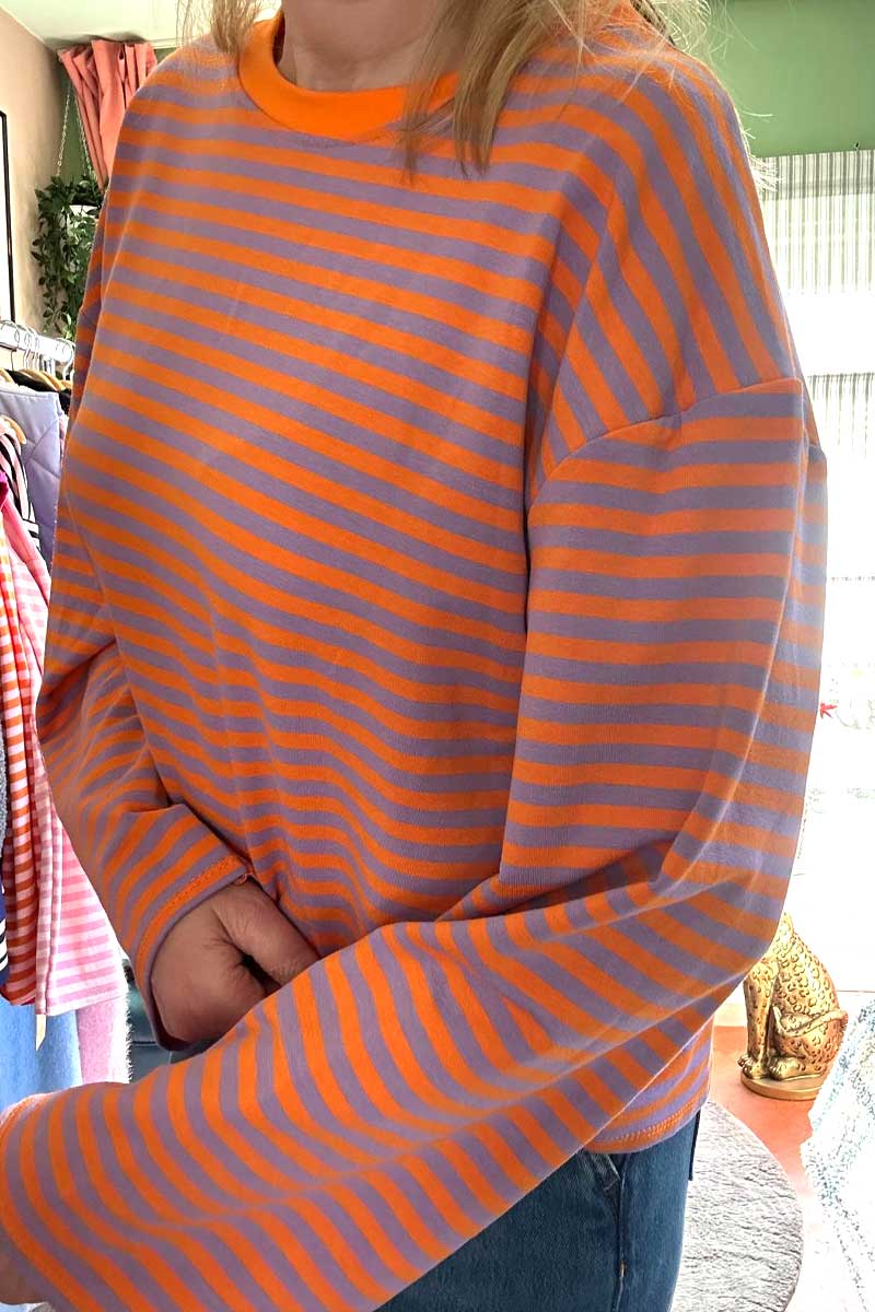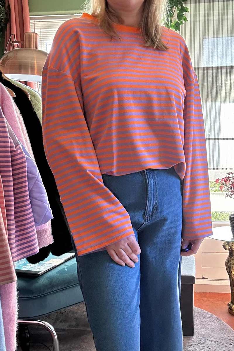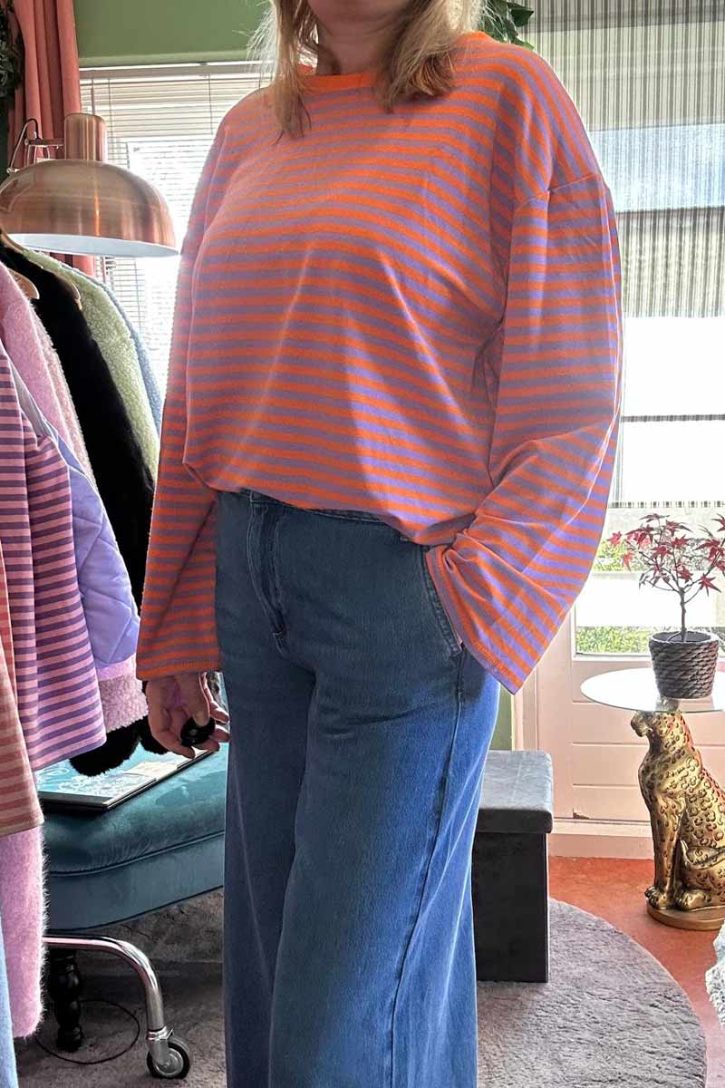 Gestreept Shirt Wijde Mouwen – Oranje met Lila